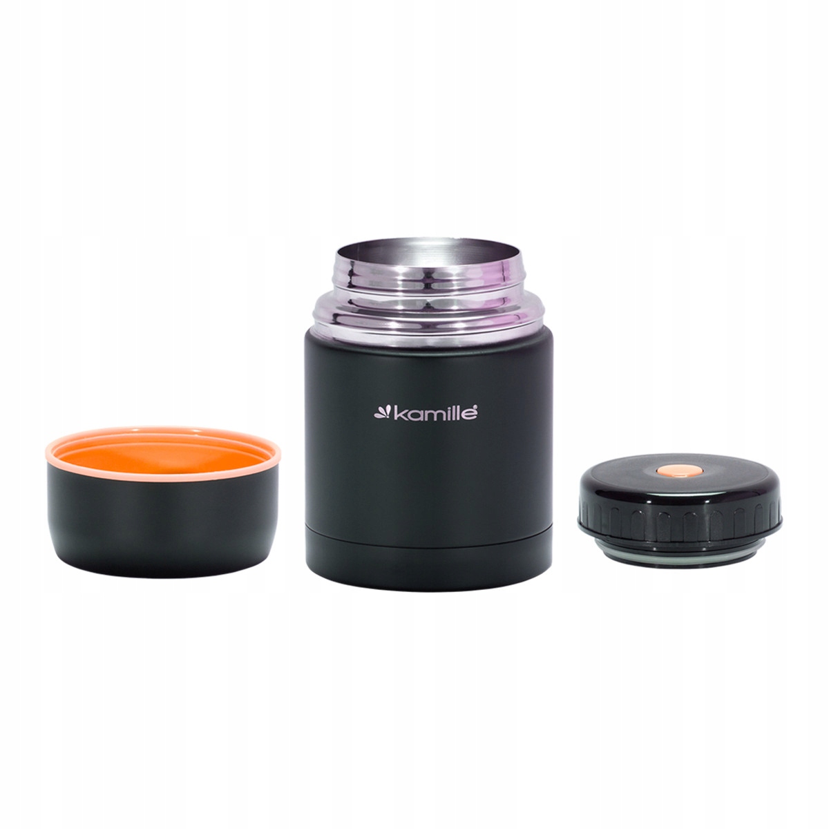 Termos obiadowy Kamille w kolorze czarnym jest niezbędny dla przenoszenie posiłków do pracy lub szkoły, na wyjazdy lub pikniki. Pojemnik obiadowy Kamille charakteryzuje się niezawodnością, najwyższą jakością i estetycznym designerskim wykonaniem.